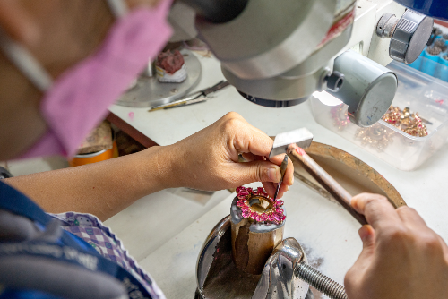 Progettato per favorire un apprendimento collaborativo ed in linea con gli standard di sicurezza e di qualità del settore, il laboratorio consente agli studenti di imparare le principali tecniche di produzione e di rifinitura dei gioielli come la piegatura, la saldatura, la laminazione, l’incastonatura di pietre preziose, la lucidatura, ecc. ecc.