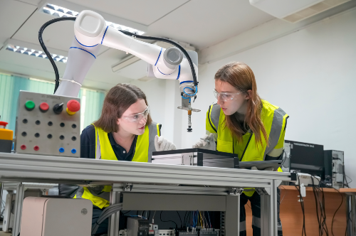 Pensato per l’apprendimento attivo della robotica industriale e collaborativa (cobot), il laboratorio permette di esplorare i concetti fondamentali e avanzati dell’automazione industriale, della programmazione e dell’integrazione uomo-macchina in un ambiente sicuro e stimolante.